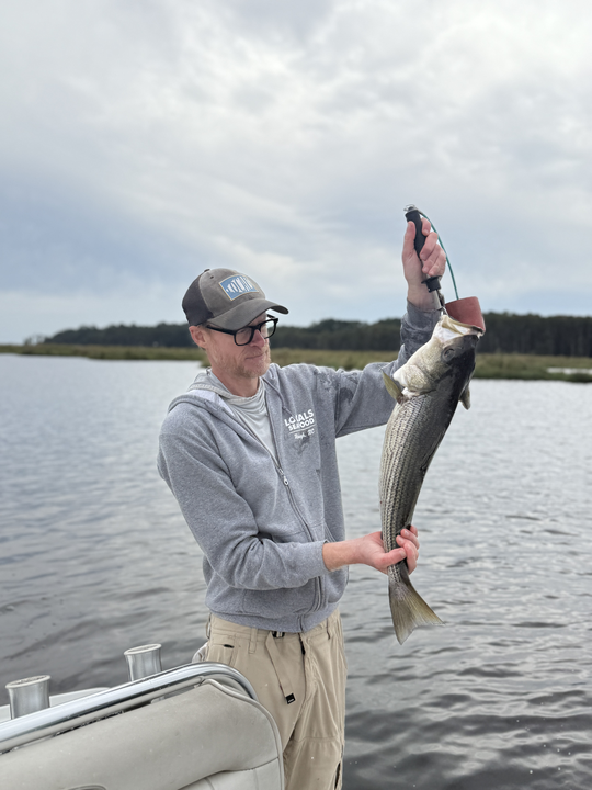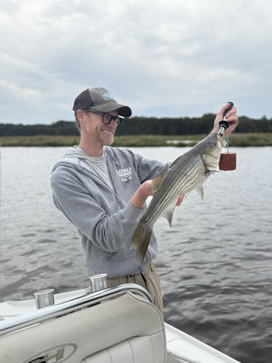 Light tackle triumph: Reeling in a striped bass in New Bern!